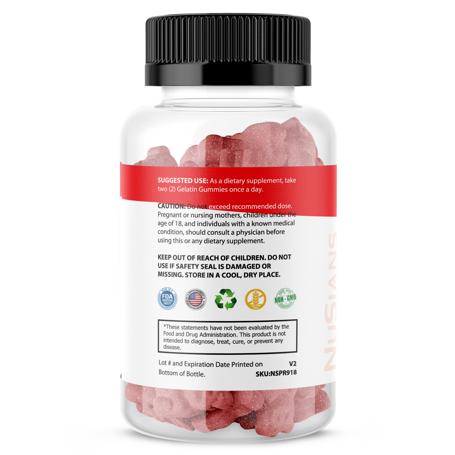 NuSians Adult Multivitamin Gummies provide complete daily support for immune function, heart and brain health, energy, metabolism, and overall vitality. This scientifically formulated blend delivers essential micronutrients including vitamins A, C, D, E, B-complex, folic acid, biotin, zinc, iodine, and inositol—all in a great-tasting gummy.