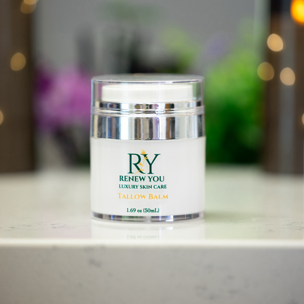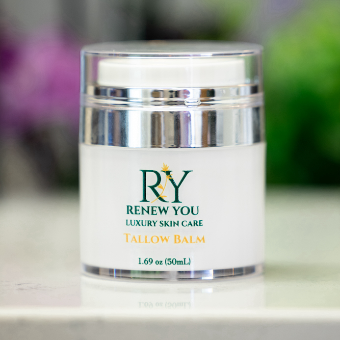 The Renew You Tallow Balm is a luxurious, bio-mimetic moisturizer that fuses ancestral skincare wisdom with modern science. Made from premium grass-fed beef tallow and infused with therapeutic rosemary essential oil, it provides unmatched skin nourishment, repair, and hydration.