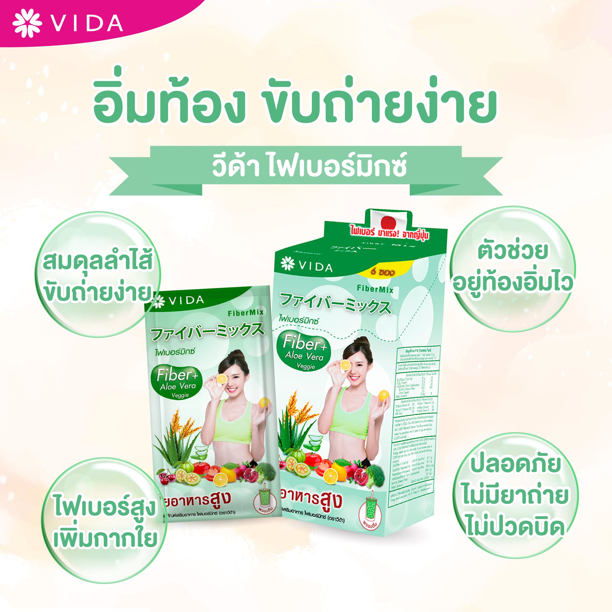 Experience total wellness from the inside out with VIDA FiberMix—a premium blend of natural Japanese fiber, vitamins, chlorophyll, and over 14 plant-based extracts that support digestion, detoxification, and radiant skin. With daily use, Vida FiberMix helps control weight, curb cravings, and promote a flatter stomach while boosting your confidence and natural glow.